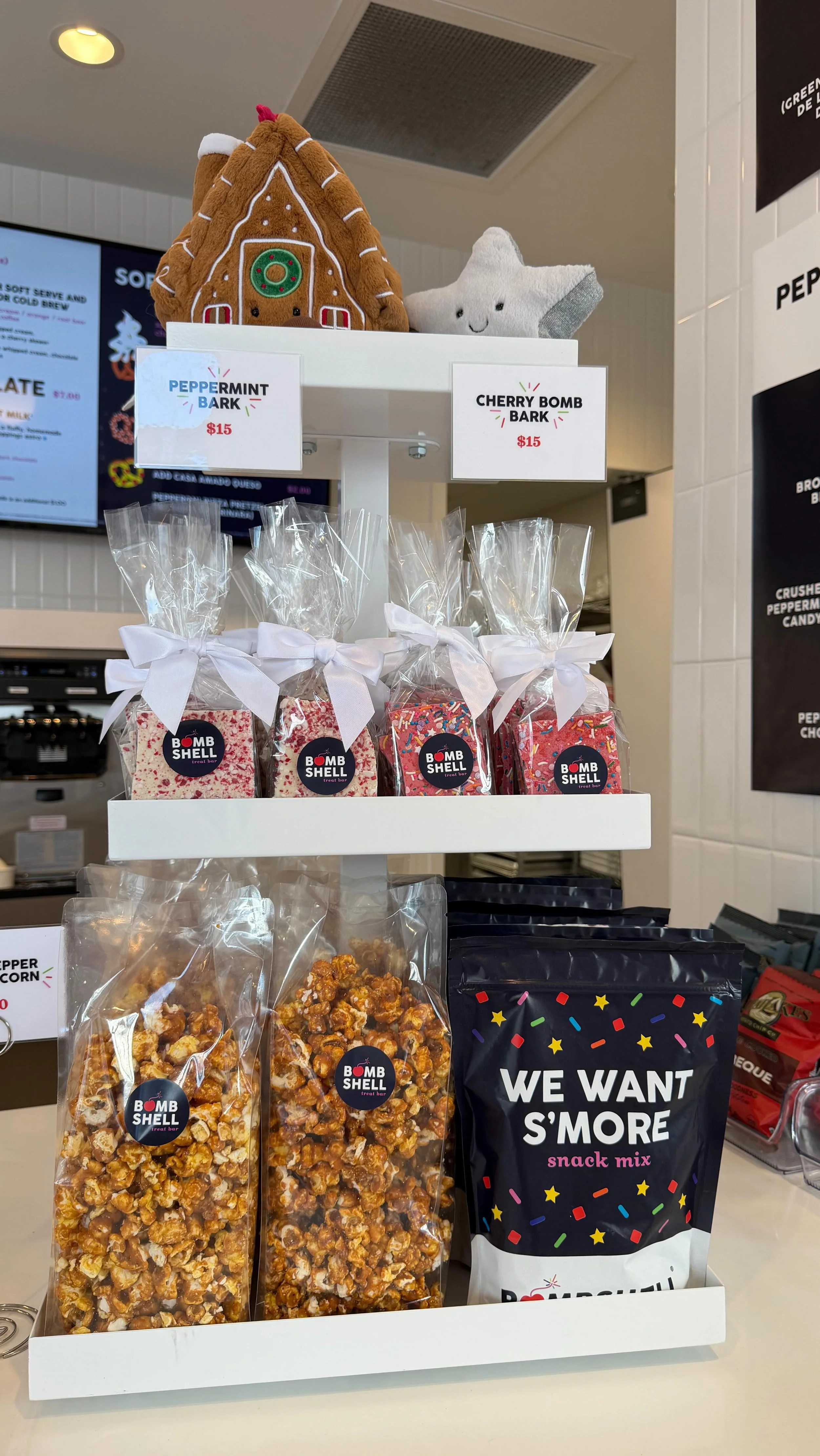 At Bombshell Treat Bar, you'll find a variety of sense-sational treats customized to bring YOU joy. From hand-churned ice cream bars (including dairy-free), soft serve, hot pretzels and crazy-rich hot chocolate, we've got a variety of sweets to make your day happier. Check out our current in-store menu that offers rotating surprises and limited edition flavors.